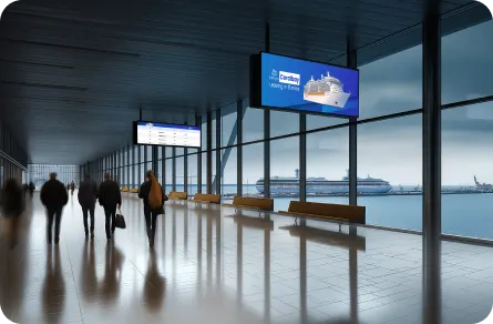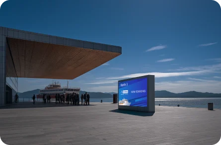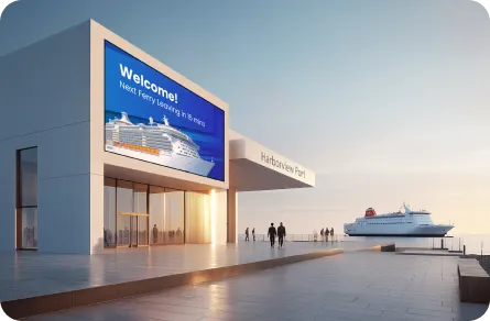 Guide passengers with real-time ferry schedules, crowd updates, and dynamic service messages across the hub.