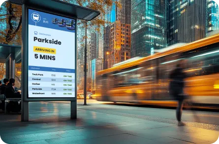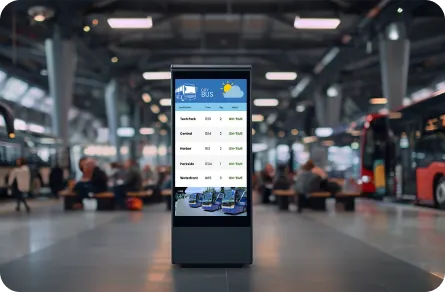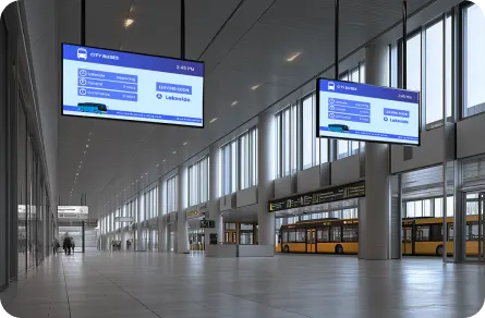 Guide passengers with real-time bus schedules, crowd updates, and dynamic service messages across the terminal.