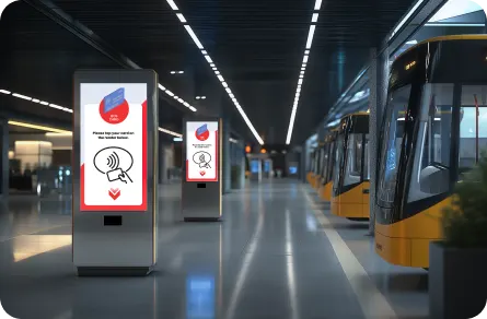 Show next-bus info, emergency alerts, and promotional messages for a smooth passenger boarding experience.